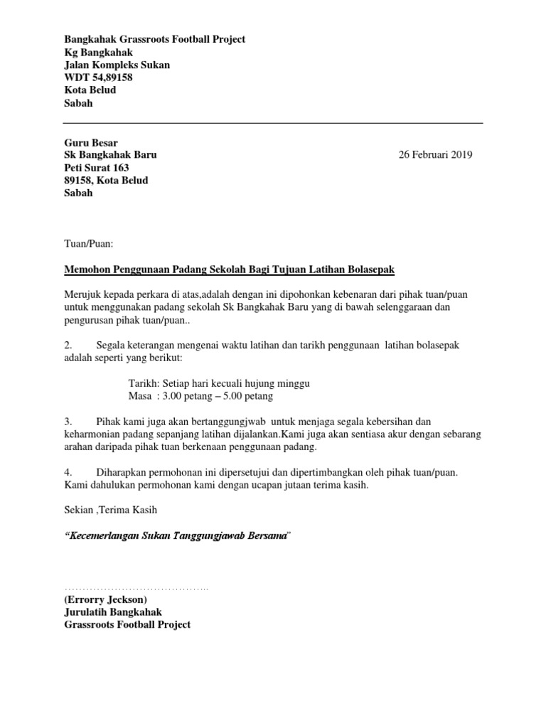 SEKOLAH MENENGAH KEBANGSAAN PAKAN 96510 PAKAN Tel. Surat permohonan menggunakan makmal komputer 1. Contoh Surat Permohonan Izin Menggunakan Tempat yang dapat menjadi referensi dalam menulis surat permohonan izin yang baik dan resmi.